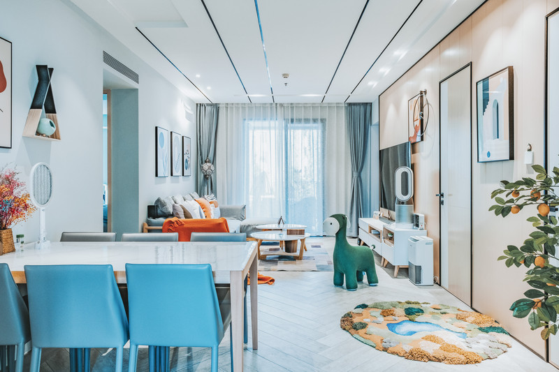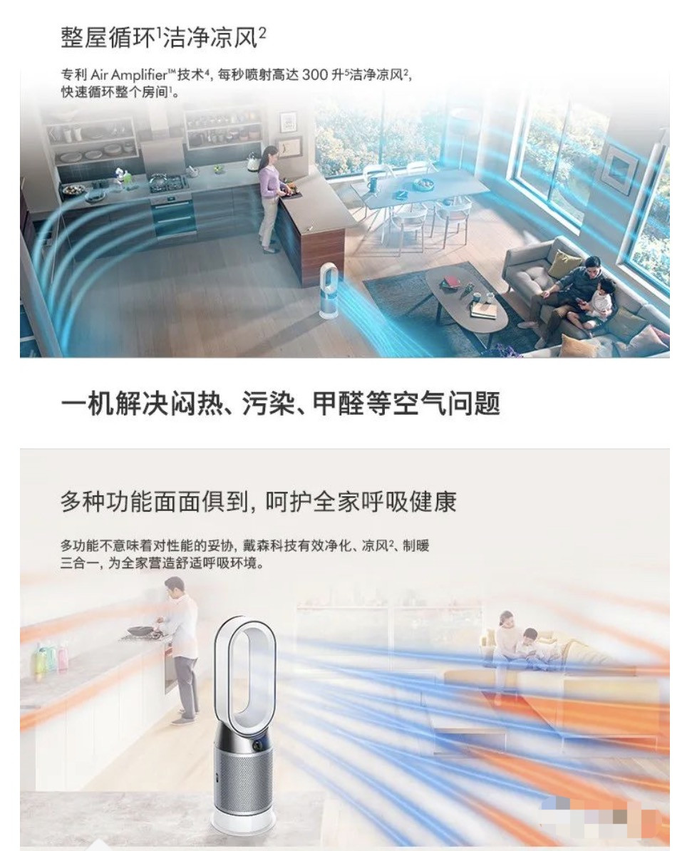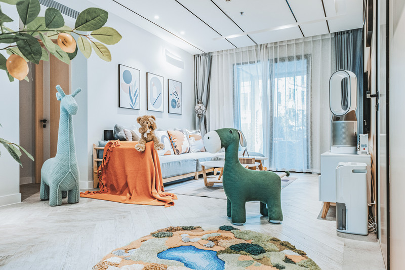 同时,在客厅还配备了功率更大的“戴森”空气净化器,并支持冷热自然风功能,可以实现每秒高达300升的空气过滤、净化,并且在过滤净化时还实现了类似自然风的吹拂,从而不仅可以消除可能的空气污染,而且还实现了自然风的吹拂效果,有效消除了夏日的炎热,也避免了持续开空调的不良反应。