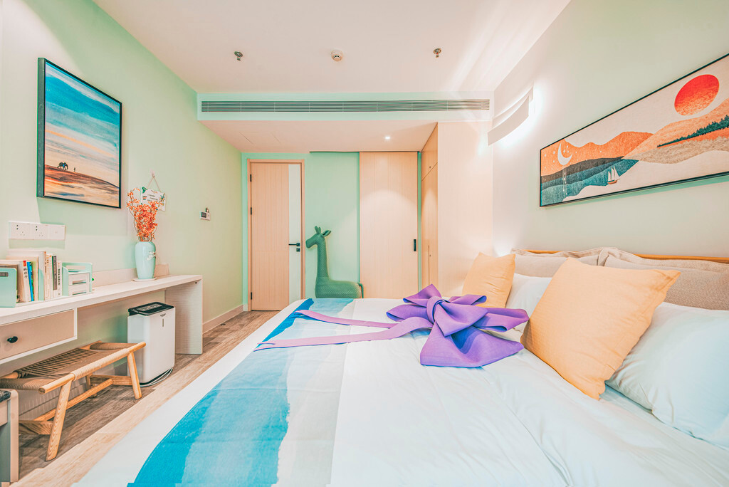 为此,「后天袋子」民宿内部不仅配备了飞利浦空气净化器,可以自动监测并吸附甲醛和笨等有害气体,还可以过滤PM2.5等污染物,确保了呼吸的健康。