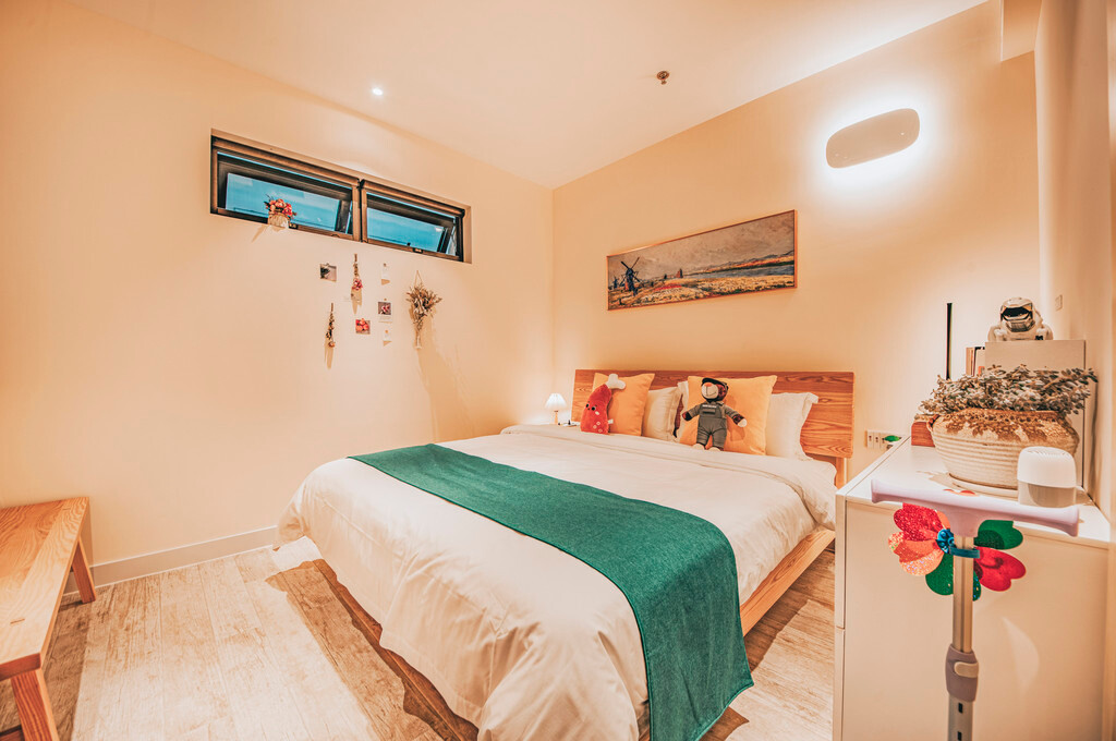 为此,为了保证家人的真正健康,「后天袋子」民宿在客厅、每个卧室、厨房等都配备了飞利浦紫外线消毒灯,定期会对床垫被褥、沙发茶几、厨房等地方进行消杀,可以完全消除那些看不见的细菌、螨虫等滋生物。